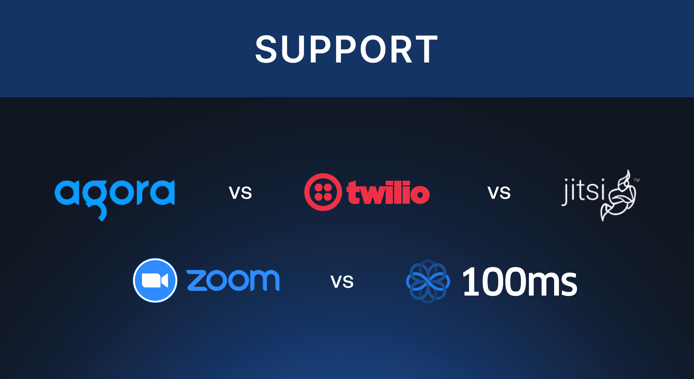Here is a quick guide that explores the support plans of Agora, Twilio, Jitsi (JaaS), Zoom, and 100ms.