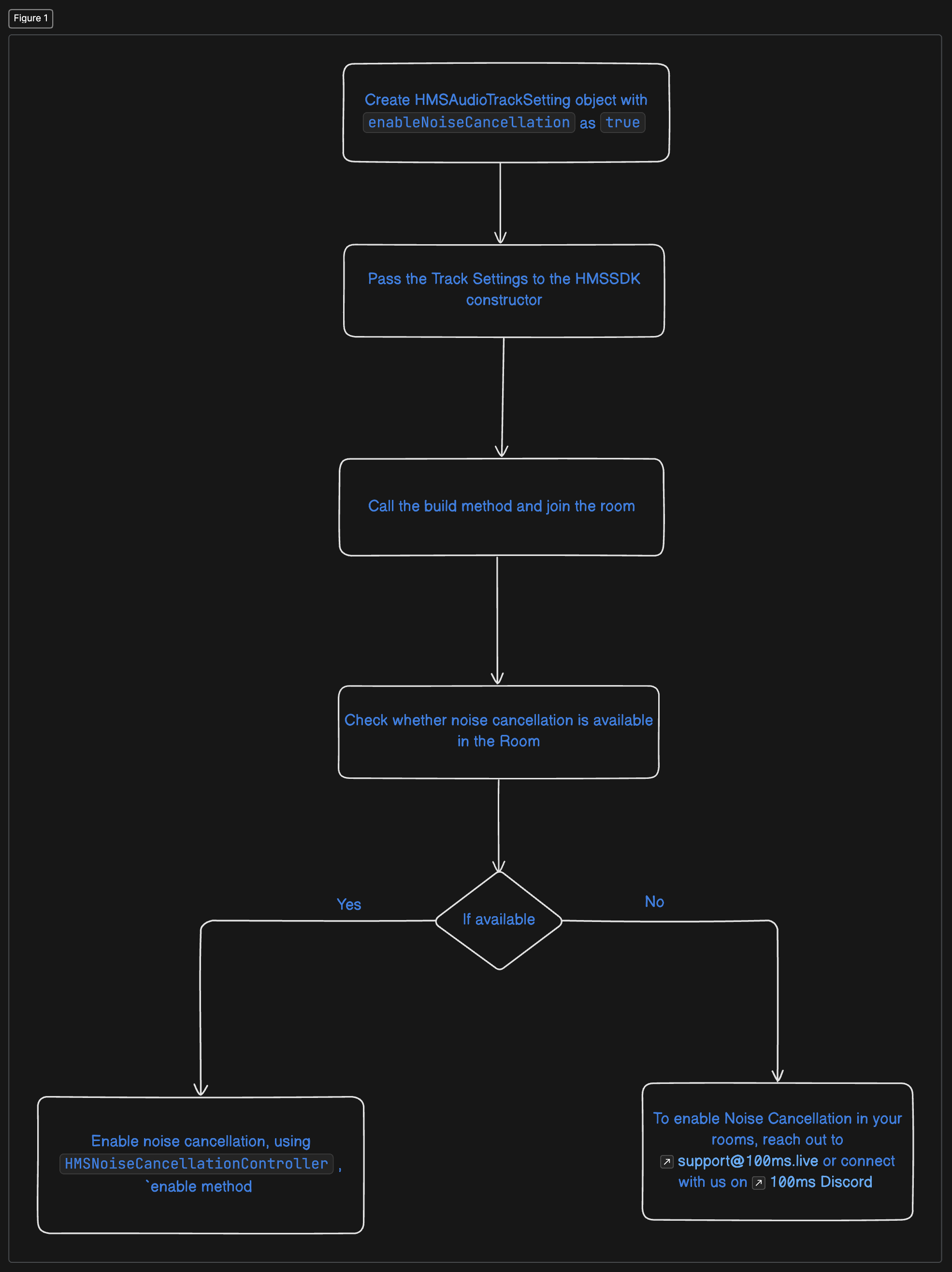 /// To enable noise cancellation set the `enableNoiseCancellation` property to true var audioTrackSetting = HMSAudioTrackSetting( trackInitialState: joinWithMutedAudio ? HMSTrackInitState.MUTED : HMSTrackInitState.UNMUTED,enableNoiseCancellation: true);
