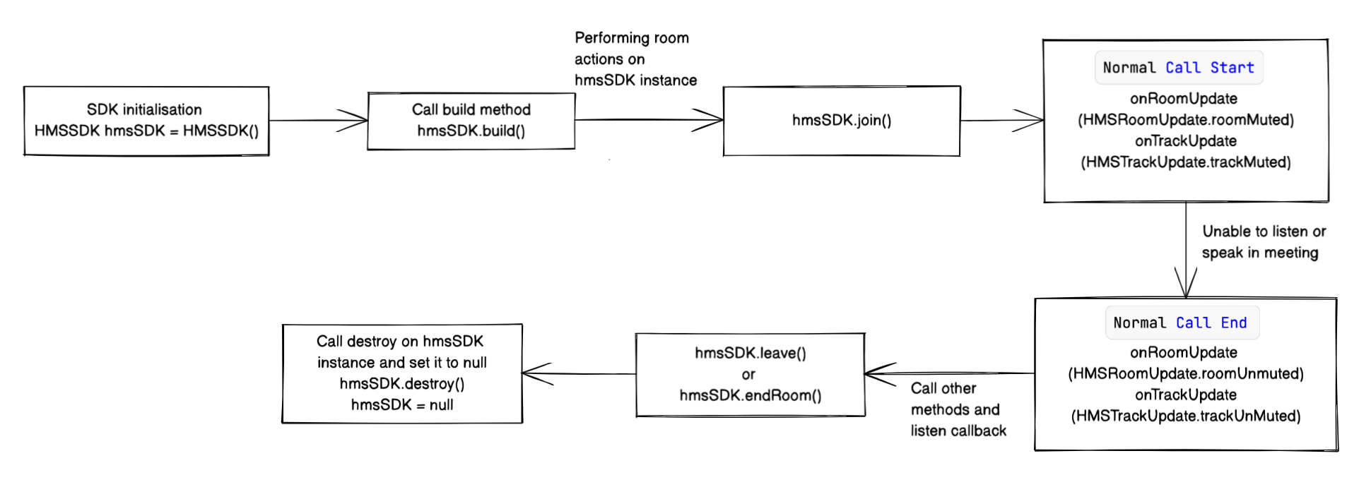 and also onTrackUpdate for local peer with update type HMSTrackUpdate.trackMuted when call starts and HMSTrackUpdate.trackUnMuted when call ends if the tracks were unmuted earlier.