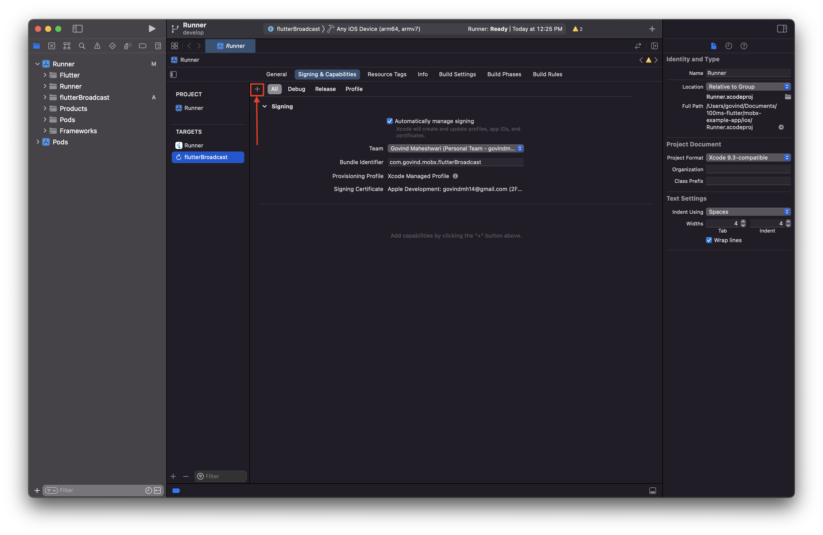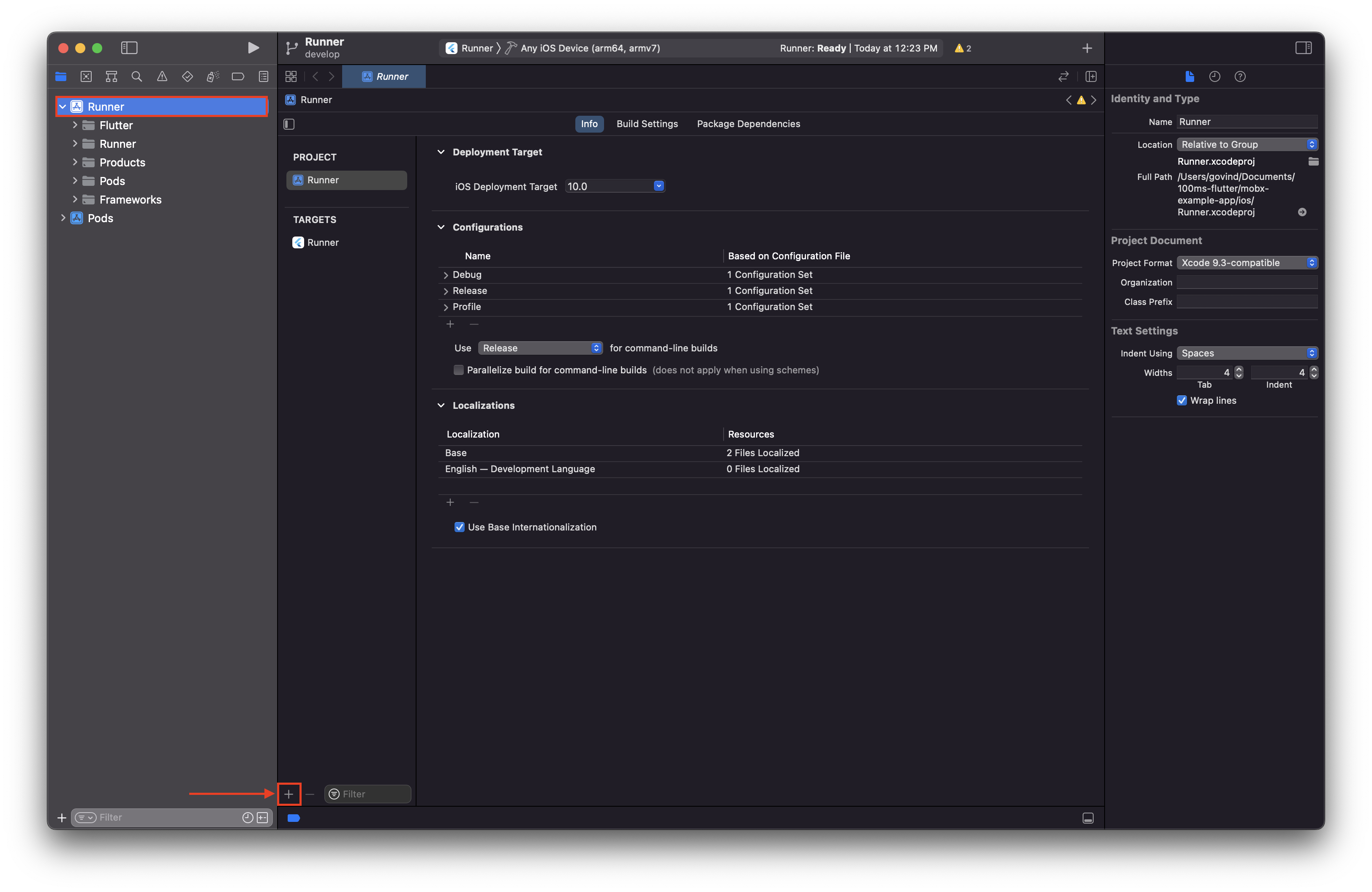 Open your iOS Xcode project, such as ios/Runner.xcworkspace for full-Flutter apps.