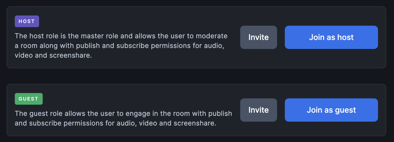 host: This role represents a host,- Who publishes their audio/video/screen tracks