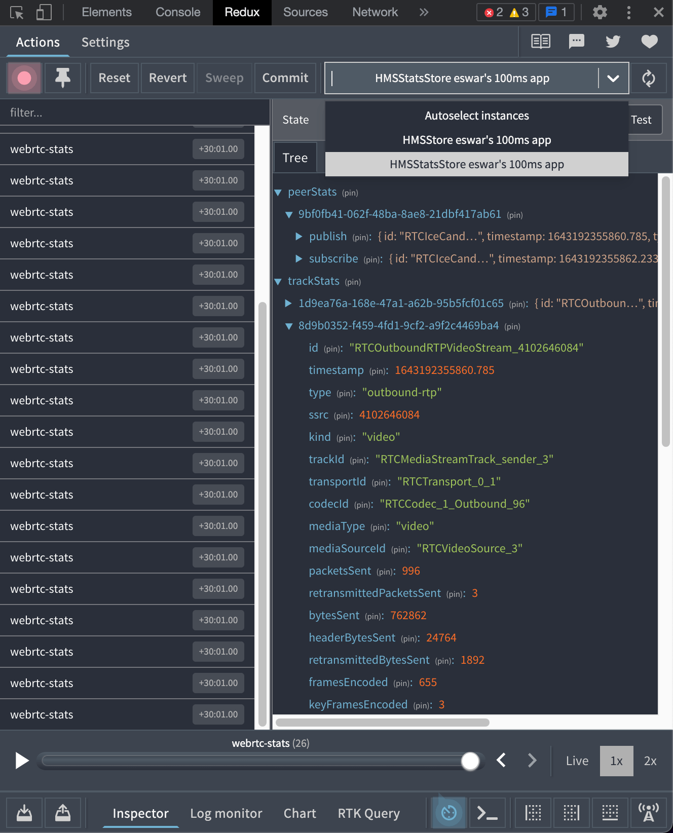 If you have Redux Devtools installed(which is highly recommended), you could open the HMSStatsStore to get a quick sense of the quality of the call by looking at the bitrate, packets lost, jitter, etc...